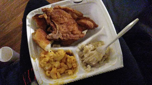 The pork chops and corn bread were delicious. Im not too pleased with tge cabbage and mashed potatoes today. They had a strange taste.