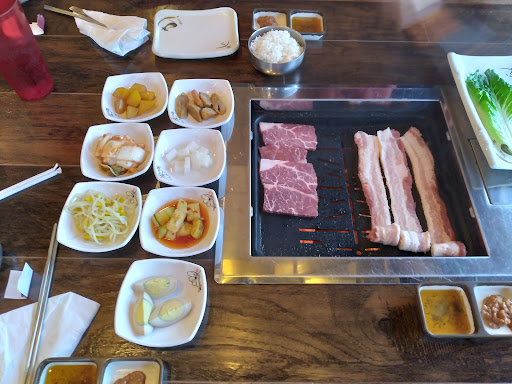삼겹살과 고추장불고기를 먹었는데. 우선 불은 렌지방식이었구요 그래서 고기에 불향은 없었어요. 삼겹살이 두껍고 맛있다고해서 먹었는데 냉동이라 서빙될 때는 좀 두꺼워보였지만 구워놓으니 얆아지고 딱딱해져요. 돼지고기 냄새는 없었네요. 고추장불고기는 양이 무지 많더라구요 3인분인데 5인분처럼 나왔는데 짜요.. 미국사람입맛에 맞춰져서 그런가 간이 쎕니다. 간을 덜하고 간장소스를 주는게 낫겠다는 생각이에요. 그리고 이집만의 양념이 안느껴져요 고추장에 소금만 넣은듯한..양파랑 사과라도 갈아넣지..단맛부족이요. 이것도 누린내는 없었고요 기름기는 적당해서 퍽퍽하진 않았어요 된장찌개가 2인 1개가 서비스로 나오는데 한숟갈 뜨자마자 소고기다시다맛이 확 느껴지더라구요. 다시다 한포씩 넣는 듯. 조미료 조금만 넣고 오랫동안만 끓여도 이런맛은 안나는데 아쉬웠네요. 상추가 크고신선하고 아삭해서 좋았네요. 아 사장님은 친절하셨어요