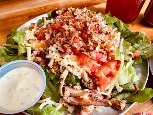 Terrible experience last night for our first time there. Walked in didnt know how it worked. Apparently it is seat yourself. We sat down after asking what we should do. Waited forever for someone to come to our table when she did she didnt bring menus. Basically awful service the entire night and the food wasnt very good. I got one of the salads. The romaine was not fresh, very old and dried up. The chicken was fine but chopped up into weird pieces on the salad. Everything else on the salad was clearly cheap crap from a box. The dude who brought us our food didnt even see that we needed silverware until I asked for it after he had returned to the table for a second time. We spent a lot of time sitting around waiting for our server to appear and noticed the restaurant must have been victim to a drive by shooting. There were multiple holes in the windows that were covered with duck tape that appeared to be from bullet holes. Anyway I do not plan on returning here for bad food, poor service, and the fear of being involved in a drive by shooting.