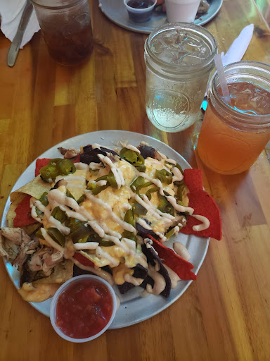 Im sure this is a great place for a beer or some moonshine but if youre looking for great chicken thighs you wont find them here based upon our dining experience today. I had the chicken chili which had a very fresh can of pork and beans and was served without a spoon had to use my Fork. We also got 12 wings 6 dry rub and 6 with the Asian. The wings appeared to be grilled and not deep fried. Unfortunately they were also very cool to the touch and had a distinct lighter fluid taste. The dry rub wings was basically wings with seasoning sprinkled on it and the Asian Wings again were just plain wings with some sort of Asian Sauce poured over them. As a starter we ordered the loaded chicken nachos. These were served with Multi color chips from a bag that were stale, cheese that was barely melted and again very cool to the touch. Needless to say we barely touched any of the food and decided to pay our bill and leave. When our waiter looked at our table and noticed we hadnt eaten any of our food he asked what was wrong. I simply said I just need to pay my bill and not looking for a free meal here. Fortunately the server persisted I did tell him what I thought the server offered to compass for the meal which I appreciated but still insisted to pay for my meal. The waiter took 25% off. If the food was as good as our server was concerned we would have had a fantastic meal. Too bad that didnt happen.