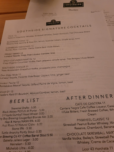 This is by far my favorite restaurant in Nashville. The staff is GREAT they really know how to treat customers. Every time we come in the know what we want and bring it to us before we have a chance to ask! The Food is AMAZING we always get the “Lobster and Gorgonzola potato chips” they are out of this world and their "smoked gouda and truffle oil burger" is HEAVEN. Im from northwest Kansas and have had some of the freshest and best hamburgers and I have to say Southside’s truffle oil burger knocks them all out of the park!!! You cannot go wrong with this place TRUST ME!!!!