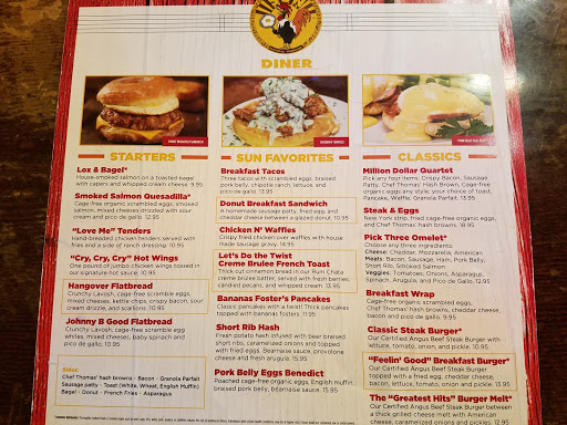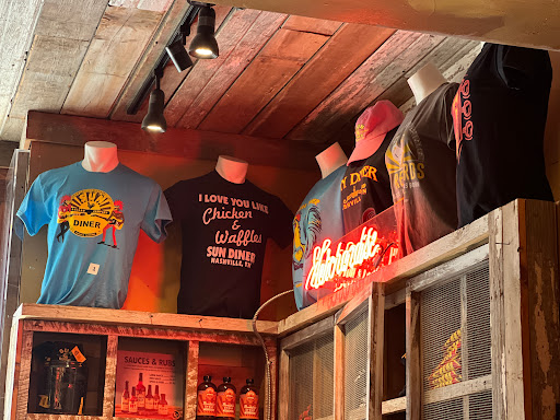 Absolutely great place! Happened upon this little gem after attending a concert at Bridgestone Arena. Food was delish and very reasonably priced, especially considering its in the heart of Nashville. The wait staff had their hands full, not an empty seat in the house. Even tho they were extremely busy service was phenomonal. The cooks did their part kept the food comin out as quick as their hands could move. Waitress was very attentive and courteous. Ill definitely be back to Sun Diner!!