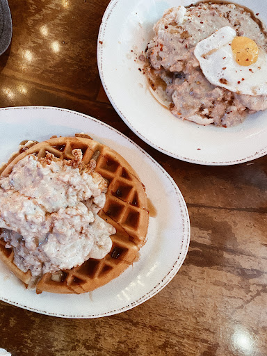 Worst experience ever! The waitress was awful and it took her 20 min to bring us drinks. She kept serving my husband the wrong drink. We ordered chicken and waffles and an omelet and it cost us $50. The food was awful and we found cauliflower that had fallen into his syrup. We asked for the waffles without gravy (as did the couple next to us) and we were both served waffles with gravy and the waitress didnt take it back to fix it. The bacon was burnt on one end and raw on the other. We will never go back to this horrendous establishment.
