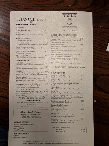 French cuisine done well in Green Hills. Great room and outdoor patio, excellent food and knowledgeable servers.
