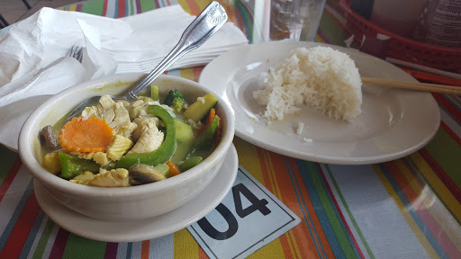 My husband and I were excited to try the food here, since were big into Thai food. He ordered a ginger stir fry dish, I got the red curry with chicken. He said his was okay, not great but not terrible. My curry was very sweet and watery, almost as if there was hardly any coconut milk at all (it should be creamy). The vegetables were mushy and tasted like they were previously frozen. The chicken was tough and chewy, way over cooked. Ive never had a worse tasting asian curry. About 10 minutes after leaving the restaurant, we both were having some serious indigestion. I dont recommend for anyone with gluten allergies, not sure our food was legitimately gluten-free. I had such high hopes after seeing all the reviews, too! I even overlooked the location and building (sketchy area, building is fairly dilapidated). Usually a hole in the wall place is a good sign. Sadly, not for Thai Phooket.