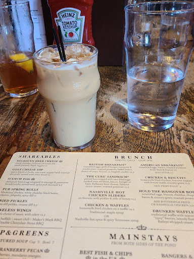 We arrived and the outside seating was filled. We were subsequently sat in a booth next to the bar. To be fair, I did not want anything to do with a "English Pub" while in Nashville. We sat down and were greeted and had an overly attentive suggested server that, I think is from Minnesota. She gave insight as to the extensive beer and food menu. She understood the need to have appetizers come ASAP, as people in the group were starving. Appetizers came out (Fried pickles and wedge salad), which was really good. The main course meal was amazing as different things were ordered. Had some sort of pretzel prime rib and a chicken type pasta. Only thing I wished was the pasta had more sauce on it as it was a little dry. Flavor was amazing on all the food that came out. I can say, for not wanting to eat at the Pub, I was utterly impressed by the food and service that were provided and given. If I was around, I would definitely go back there without a doubt!