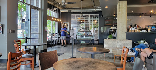 Best. Coffee shop. Ever. Love the giant garage door they open when its nice weather. Love that all of their employees and personable and smiling and helpful. Im about the least-cool person I know, and when I go into other coffee shops, my lack of coolness is so obvious, but the employees here dont even notice it! They are just delightful. Theyre happy for you to work here all day to finish a paper or project. They have an outdoor patio where you can work or sit with your dog. And their panini sandwiches are delicious. In fact, I think Im craving one now......
