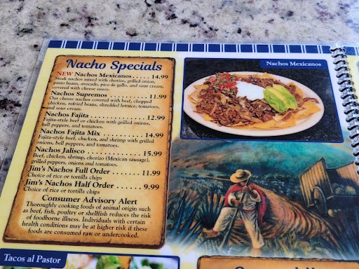 Excellent Mexican Food. Eat their often with our son, our daugher-in-law and our grandsons. One of my favorites is Jims Nachos with rice. But then every thing I eaten there is great.