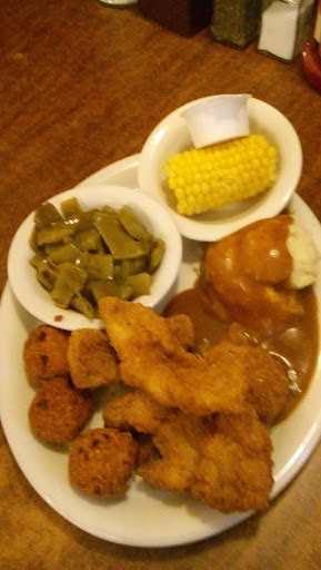 We both ordered liver & onion + 3 sides. Wife was OK with hers but mine was mostly a plate of thick gravy & onions with 2 tiny pieces of liver. The large glop of congealed gravy concealed the fact that there was so little meat. Complained to cashier who said I should have told the server. But we only saw the server when she took the order, when she first delivered it, and when we were standing up to leave. Sides were ok, just straight from the can like you get at a bulk food store.
