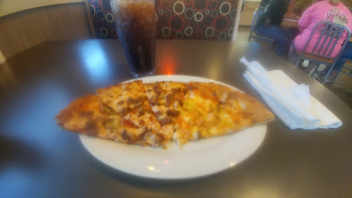Took forever to get our food while we was sitting at the table the floor you look at the floor you can see the food all over it from where the Buffett was two people walk by the food neither one of them bothered even sweep it up but yet both of them had a broom in their hand and when we did get the food it was cold didnt even get refills on her drink and instead of getting plates the lady brought paper plates and that is this lazy to go into a pizza place and get a paper plate to eat instead of a regular plate