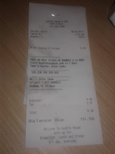 I live in Lewisburg and drove all the way to Shelbyville to eat here. (We have a huddle house in lewisburg) Shelbyville is the best huddle house around! Food and service are ALWAYS excellent!