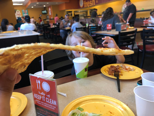 The food here was not very good. Looks like the staff was rushed to keep up with the flow and shelled out flat pizzas the entire time we were here. The store is clean and the wait time was non existent, the food really ruined the experience, I know CiCis is cheap but this really set the bar low.