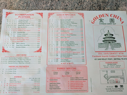The staff is friendly, the portions are huge, the food is great. Youd better be starving if you order the egg fu young because you get two enourmous patties in your combo order (loaded with shrimp if thats your liking). The General Tso chicken is fantastic, but I do always ask for a little extra spice because I think they spice it regularly for American palates. How those other restaurants keep winning Ruthies when Golden China is around is beyond me.