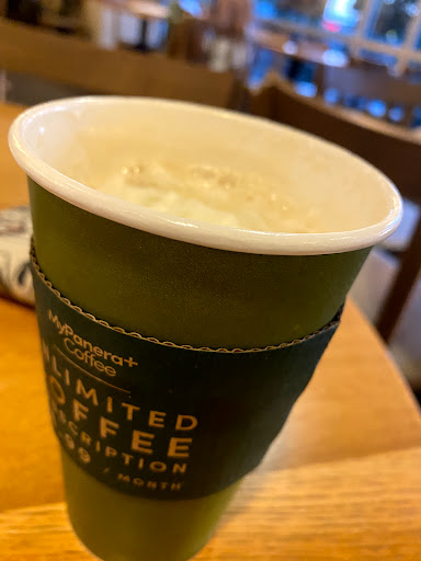 We usually love Panera, this location is an exception. We purchased a steak panini ($10) and caffe latte ($4) and a couple of bagels. The bagels were good, but the so called "steak" panini was roast beef for the price of steak and the specialty coffee was bitter to the point of being undrinkable. If you want Panera keep going down the interstate a couple of miles to the next exit instead.
