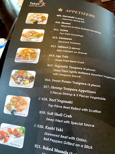 Tokyo is one of the most exquisite restaurant that Ive ever been to. When you go inside the restaurant you have a welcomed and a happy feeling when you go inside. The waiters their greet you nicely and give you a happy smile. You have a choice to sit either in the sushi area, wich is a small area mostly for couples to eat in that area, or you can eat at the grill table and thats more of a family zone. The cool thing about that part, is that they make the food infront of you. But either way there both a great place to sit!!! But the food there is soo apetizing!! even though the words in the menu, some of the words are hard to pronunce but the waiters or waitress that work their would be happy to tell you how to pronounce them, and they also tell what the food comes with. The workers there are so friendly and nice. Its also a great environment to be in, as in they dont have those dim lights that some of the other restaurants typically have instead, they have mild-bright lights because if you pick to eat at the grill table they dont use too much lights because the chef that makes your food infront of you, uses some kind of cookin oil and when he does, the cool thing is when he lights it up and the fire is so bright that it gives you a mild chiken skin. Its also a realaxed place to be because they play a realaxing and soothin music in the background when your eating. The best part about tokyo is when they cook the food infront of you, the chefs their, do some cool tric. For example like they get an egg and they put it in a spatula and begin to spin it on top of it and they through it in the air, but before you realized it its broken, but thats the whole point it and its really cool how they do it. I really recommend tokyo for a date, a family reunion or even for a party, because I had a party at their and all my friends really liked the restaurant, and they also had a great time and enjoyed the food too!!