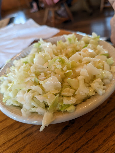 Took my dad here to eat the portion size was huge, however I have to say the food was a bit under seasoned, the food while flavorful just didnt have the 5 star taste for me except the turnip greens and the spoonful of my dads white beans. I ordered the cajun catfish strip dinner which I got a side of the turnip greens and vinegar based coleslaw and a 6oz steak, you could taste a cajun flavor on the strips but there was no salt, the steak was just right on the cook and the flavor of the steak was great but again lacked butter or any kind of seasoning all in all i would come back here the food was good and you get huge portions i wish i could have rated The Catfish House a 4.5 out of 5.