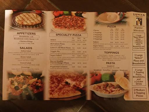 Lances pizza is wonderful not greasy I love lances pizza their prices are also great. Even delivery the pizzas are always fresh and hot.