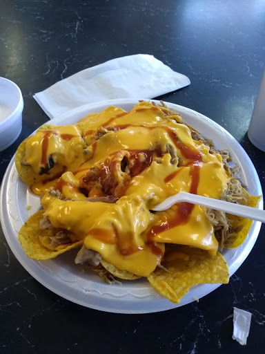 I tried the BBQ nachos and they did not disappoint. The only thing is that the place is small and they only have a few tables inside but worth the stop regardless.
