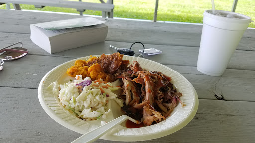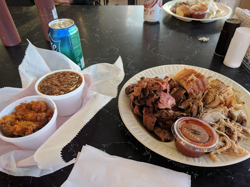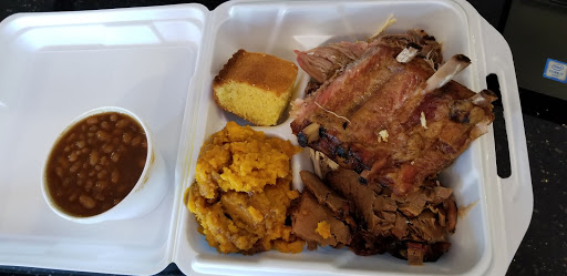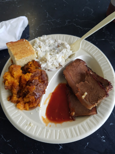 I live close to this dinner and can smell the awesome flavors from their huge smoker when the wind is right. Sitting out in my front yard at night, my Russell Terrier Buster Keaton is ready to go. Great food and service. Not being a pork consumer, I love their chicken and beef brisket plates. I usually go for the potato salad or cole slaw with baked beans which I like to pour over crumbled cornbread...