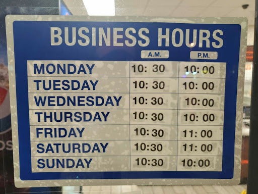 | Working: | 11AM–10PM 11AM–10PM 11AM–10PM 11AM–10PM 11AM–11PM 11AM–11PM 11AM–9PM |