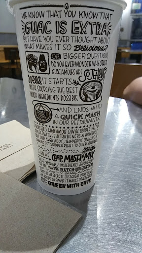 I love Chipotle, just not this location. I ordered a steak salad w/ guac, and it was extremely bland, and I could only taste the salsa. Not to mention I didnt get a decent amount of guac. This was the worst bowl Ive had from Chipotle.