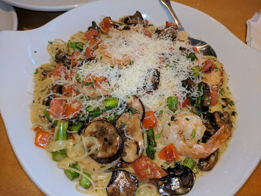 I ordered food to go first they couldnt find the ordered i called in then my food wasnt very hot when I got home also on the create a sampler Italiano I got only 9 calamari 2 cheese sticks and 4 stuffed mushrooms the chicken Alfredo was blan it tasted like water the chicken was tough and my boyfriends meatballs were over cooked I asked for fresh grated cheese before I left the girl said theres cheese in the bag is might as well had a green tube of kraft. I called to complain the manager was a bit snobby and rude and stated it was close to closing no offer to remake my order another day olive garden in addison is slipping down a slippery slope they need new managers and staff training on how to talk to customers