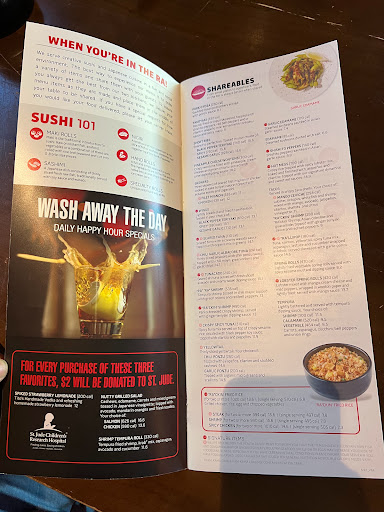 I have been here numerous times with friends and family and each time we have been able to find something enjoyable and unique. The drink selection is good, the atmosphere is great, and the waitstaff are pleasant and attentive. If I were to ask for anything, it would be a larger offering of specialty sushi rolls that do not contain imitation crab and/or cream cheese.