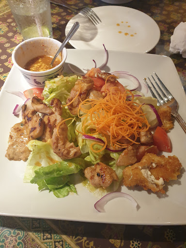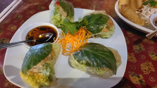 A small restaurant with very limited seating capacity. Went there on a Saturday night. It took them 20 minutes to get us a table for two. Thats how packed it was by 6.30pm!! the food was awesome. For Starters: we order steamed chicken potstickers (regular stuff nothing exceptional), chicken curry puffs (amazing), Mains: Jungle curry with pork (asked them to make it really spicy) , Thai Stars 5 Star noodles with beef (asked them to make it really spicy). The Jungle curry tasted good but was nothing in comparison to the noodles which were mind-blowing!! Overall - good food, quick service, polite staff, not expensive. Music - there was a live band (A guy was actually yodelling), which was too loud but entertaining non-the-less, had to wait to get a seat (but you always have to wait at places that exceed expectation when it comes to taste)!!