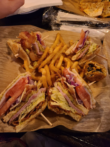 The food was nothing to write home about, service was good. It was pretty empty when we went for lunch, and got a chicken sandwich and a burger. The burger was pretty bland, and chicken sandwich was average. It seems like a cool place to go to drink, but Id probably venture somewhere else for food.