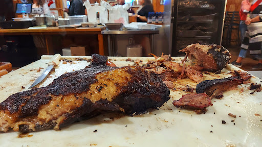 Walk in, wait in line, meat is cut to order. Prices are a little higher than expected. I paid $10 for a brisket sandwich meal. Everything else seemed over priced. I did not get a plate and try all meats so my review is exclusive to their chopped beef. They smoke all their meet with mesquite, one of the only BBQ places I’ve found that uses Mesquite. The chopped beef sandwich was one of the best I’ve ever had. It was a little sweet because of the BBQ sauce, but it was still very good. The BBQ sauce did not, however, taste like ketchup as I’ve seen noted on here. My side was cheesy mashed potatoes. They were subpar and only a little warm. The tea was just ok. There are other attractions here apparently: a “burnout cage”, a playground for kids, and perhaps a theater type area (I’ve seen in other reviews)? We went for lunch and none of this was open. I get the impression that’s a nightly thing. They also have an area for ice cream and smoothies, but no one was there. Upon asking the cashier how to get a smoothie he replied, “Someone should be there”. We hung around for another minute then just left. It was worth the 5-10 minute detour on the way to San Antonio and I’ll go again to try other meats (and give them another shot). Self serve Instant food (unless there’s a line) Plenty of parking Plenty of tables Air conditioned