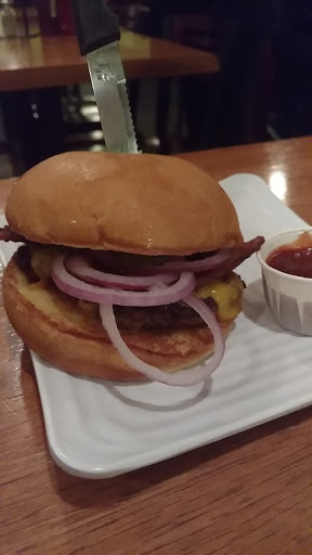 I had the jackie o Lamb Burger it was cooked on the outside but raw, not cooked on the inside. The manager came back with a new burger I told him it was dangerous serving customers raw meat he said no it isnt I eat my lamb burger pink all the time. I said this wasnt pink, but raw and cold. I gave them the burger, i guess he didnt even check and assumed i was lying. oh by the way that burger is 10.50 the argument from the manager is free. The Manager is a gentleman with salt and pepper colored hair.