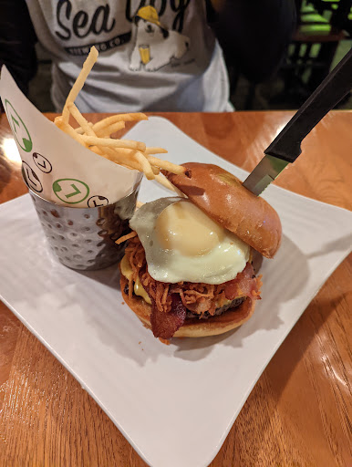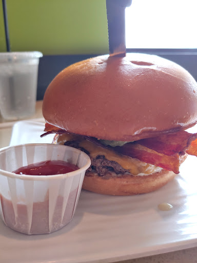Went here after an afternoon at the outlets. The place is really well outfitted and welcoming and clean. As our first time, the hostess explained the process for us and we went off to create our burgers. Expect fair pricing that really starts to add up once you mix in specialty sides and burger additions like different meats and whatnot. Shakes are phenomenal and served silky and cold. My onion rings were huge so theres that. haha Delicious from start to finish, service on point and serving time from order is just right for fresh food. Will definitely be back.