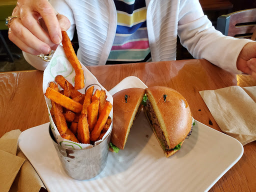 Great first impression (Sep 2015). Came here based on reviews in various Collin County publications. You get a really big burger that you need to cut with knife. Many choices of meat (or veggie); turkey, lamb, bison, beef, tuna and many combinations of toppings. Too many choices and so little time. Courtesy and friendly service as you get a paper with a number on it which is your parties order nr. Even if everyone is paying separately. Go to the sign board and make a choice. I am told they bake their own buns. One order of fries for two people is more than enough considering the size of the burger. UPDATE May 2016: Return visit and we got the Liberty burger and one order of sweet potato fries. The fries were the best part and got another star added. Next time we need to try different menu items. UPDATE Nov 2016. Return visit while going to outlet mall on weekday. Still a 5 star place. UPDATE May 2017. Still great burger joint. Probably the best sweet potato fries in the area. Nice touch to give a small sample of bread pudding. Yummy!!