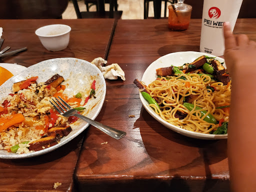 pei weds food is good if they make what you order, which they seldom do correctly. I ordered again the Sesame Chicken with Extra Veges and Quinoa. Well, once again there was very little chicken, no pea pods whatsoever, tons of carrots, huge pieces of onion and it was just gross. This is not the first or second time this has happened. Now, my husbands which cost $1 more because of shrimp was fine. All the right veggies in proportion. How hard is it for an asian restaurant to make sesame chicken? REALLY!!!!!!