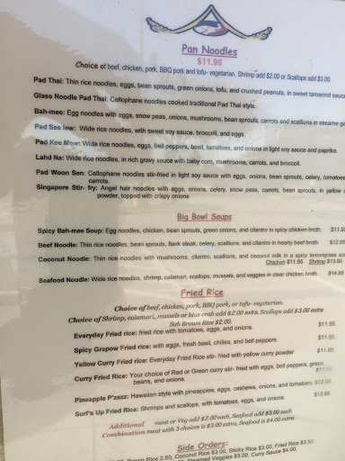 Today was the second time going to this place and they do not disappoint. They are a little higher than our old favorite neighborhood Thai place (we moved from Dallas to Plano), but the quality is definitely there you get what you pay for in most cases. Their Green Thai curry is amazing and it is thick but light at the same time. Pineapple friend rice also does not disappoint. Will definitely be going back again soon. Service has been great they have a good atmosphere.