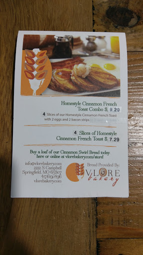 Stopped in on the 4th of July for a nice breakfast before a movie and couldnt be happier. We were greeted immediately and for 7:30am they werent too terribly crowded. By 8:00am though, it was packed! Our waiter was friendly and attentive, quickly refilling drinks before they became empty. I love the chic Texas country decor. It makes you feel right at home! We ordered a kids Micky Mouse pancake, breakfast croissant and the cinnamon French toast combo. Impressively quick service. The bacon was cooked perfectly - thick slices that are perfectly crispy. Even the kids pancake was cooked perfectly and tasted great. I highly recommend the cinnamon French toast! It was delicious! The cinnamon swirls in the toast add a nice flavor and crunch to each bite. You will not be disappointed if you give this place a shot! It quickly became a family favorite.