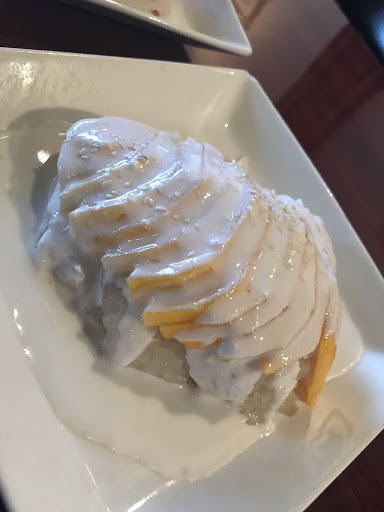 we have moved from out of state and was not able to find a Thai restaurant to our taste - till we found this one. we love there Tom Kha soup with straw mushrooms and their sticky rice with mango is great. the mango has no fibers. The service is quick but the servers are very quiet and not very friendly.