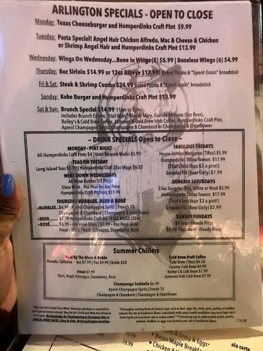 We went on a Sunday thinking that this would be a nice family outing after church. Wrong choice by far since we ha to drive from Duncanville to Arlington which took about 30 minutes since this location was the closest. Upon getting there we enter and no one greeted us or even asked if we had been helped. The same lady that had passed us up previously came back about 5-10 minutes later and asked if we had been helped. My first thought was ummm no because you are the one to help us. First impression is always a lasting impression. We were then seated and our server Yoshika came and took drink orders for half the table and left without getting the other order. Another waiter was spotted to let her know to inform Yoshika that she missed a few drinks. (2) Attitude about needing to wait until she came back to tell her. (3) Drinks received but upon taking a drink there was black thngs floating in our drinks.(4) Ordered but missed somethings. (5) Utensils were dirty with food left on them. (6) Attitude from server was outrageous. Overall Experience is a .5 out of 5 stars. This was my first time visiting Humperdinks and will def be my last. I will not recommend this location to anyone. I was so upset that out of my check the server received 5.50 gratuity on top of a 35.00 bill. So upset that, that was 40.50 wasted on a piece of junk. Corporate will be called.