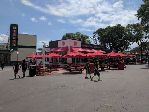 The burgers were terrible. I could hardly chew it because they were so tough. Please eat at any other place at six flags but here. Dont waste your money.
