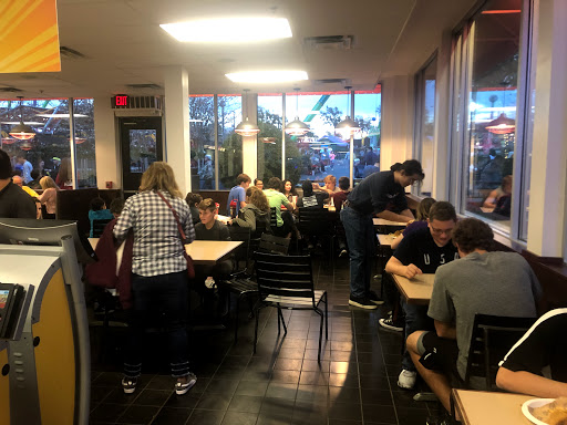 Depending on when you go, this place can be slow or REALLY slow to get your food. The line takes a while even if its not very busy so dont go in here expecting to grab a quick drink/shake. The cheeseburgers are kind of on the small side, but tasty considering the cheese they use (which is like unwrapped cheddar cheese slices youd find at a grocery store). FYI, this is usually the coldest place to hang out in the park during the summer (they almost always crank up the AC in there).