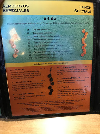 Custower service was aweful.I dont speak Spanish so was totally ignored.The staff look over worked and I order tortilla soup to go which too exacty 28 min to receive.I actually had to ask them if soup was really?Had to get back to my pt.I get in my car and the large cup of soup was half way filled charge @ $4.56.I honesty could believe it!full of liquid and very few veggies.I looked in my box of chips and I there was a small amount of chips to put in soup.I request my money back and the young lady was totally apologetic.I told her there is to many Mexican restaurant around to be treated with such aweful service.