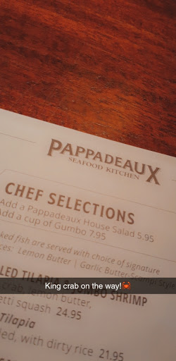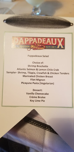 Horrible service and over priced for mediocre food. My family arrived at the restaurant around 715 pm. We ordered shortly thereafter. My wife ordered a wedge salad only to be told that she could not have it due to it being prepared while in the same breath he told us that they did not have any iceberg lettuce due to a large party of 30 that had come before us?!?!?!? What? I also ordered a beverage from the bar at the same time we ordered our food. We got our food at approximately 830 pm. Needless to say, I never received my beverage even after reminding our waiter. The food was "okay". Good flavor but certainly not worth the cost. We had king crab legs, a shrimp trio, and a childs corn dog plate. For this it took over an hour to prepare? Oh but it did..... Save your money and go to another restaurant like Joes crab shack next door if you want seafood. Our waiter did acknowledge the long wait times for our food and the forgotten beverage from the bar. The waiter did offer to give us a dessert at no charge. So at 9 pm we order dessert. We get it at 930 pm. The kids were tired and had already gone to the car with their mother before the dessert came to the table. Offering to give us a dessert was a great gesture but not nearly enough to make up for the over 2 hour dinner and a bill over $100.00. We will never return to this location again. And Im not even sure if well ever try another pappadeaux after this ridiculous experience.