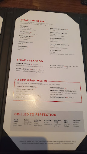 Its lost its luster. Its been about 3 years since weve been and totally shocked at how terrible the quality of the steaks were. My husband and I both had bacon wrapped filet mignon. Both were over cooked (we requested medium) and Both did not seem to be filets, very fatty and not lean like a filet traditional usually is. The ahi Tuna tower as sub par - nothing that screamed wow this is some damn good sushi rated tuna. We never said anything to the server partially because we hardly saw her and it didnt matter. We already made up our minds we were never going back. The fresh bread was excellent and wedge/Caesar were AMAZING! We joked as we left - should have ordered salad and bread and thats it. Waste of $200 + dollars. Roadhouse is where we should have gone or spend the same amt at a real steakhouse like bobs or trulucks.