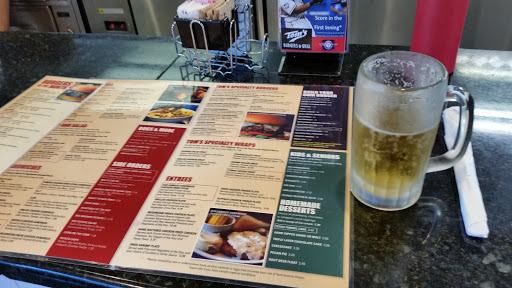 Been coming here for yrs all the time i order the 1/2 lb double burger Recently Toms has changed its pricing we had 3 drinks and one got spilled all over our table by the waitress the whole visit we never got a refill one drink was brought out with out ice . burger no longer come with fries ..my jaw dropped 1 single patty burger $8.00 3 in my party one who was an 8 yr old child and the bill over $40 who ever works the fryer dose not drain the 3/4 cup off grease off the fried food ether worst experience ever at this restaurant I promise i will never come back EVER you charging RED LOBSTER PRICES and putting out McDonalds quality food