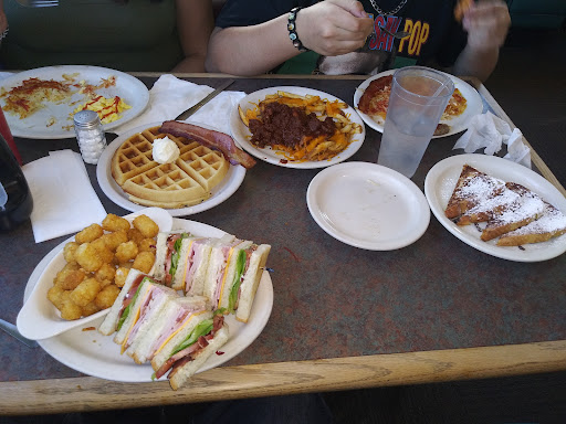 Came here for the first time on our way to the Rangers game. Decided to get breakfast at lunch time. The waitress was very nice and took our drink and food order fairly quick. Had to wait a long time for our food, but we werent in any hurry. The food comes in large portions, so you feel like you get a lot for what you paid for. I got the chicken fried steak and eggs. I thought it was interesting that they put potato chips in the breading. It tasted really good! Eggs, hashbrowns and pancake were good as well.