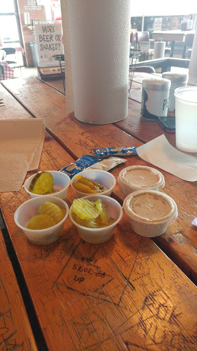 Twisted Root Burger Co. was a fun place with a quirky atmosphere that, in my opinion, really suffered from one flaw. The shake was cold to the touch, but lukewarm in the mouth which completely perplexed me and my friends. Despite the shake, the burger was cooked well, the veggies tasted super fresh, and the fries were top notch fries. My favorite part about the experience by far was the variety of pickels that stand on a converted salad bar on the other side of the soda machine as well as the handcrafted rootbeer. Every kind that I tried I loved (I stayed away from the wasabi pickels because I really dont like the stuff)! Overall this place is definitely a place that I will stop into anytime I am in the neighborhood, you just wont find me ordering one of those puzzling custard shakes.