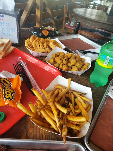 Tin Roof BBQ is a locally-owned, family-friendly restaurant in Atascocita. My family and I have been regular customers for over 10 years. Weve watched them grow from a single building to the large compound they currently operate, complete with shaded outdoor decks and a playground for the kids. Live music every Friday and Saturday night too! The brisket is good, especially the moist, barky pieces, and the BBQ chicken is consistently good as well. Chopped beef-topped baked potatoes with the works is a favorite, as well as the "World Famous Texas Cheesesteak Sandwich," featured on the Cooking Channels series Road Trip with G. Garvin. Great fresh-cooked burgers with fresh-cut fries, and chicken fried steaks are made to order. Their fresh onion rings are one of the best things on the menu; eat them all as soon as they hit the table, while theyre hot! Other sides are made daily and offered steam table-style from the ordering line where you make selections to go with your plates. Family favorites are the mac & cheese, squash casserole, and broccoli-rice-cheese casserole. Dont skip fresh made desserts--peach cobbler, pecan pie, coconut pie, and various cakes.