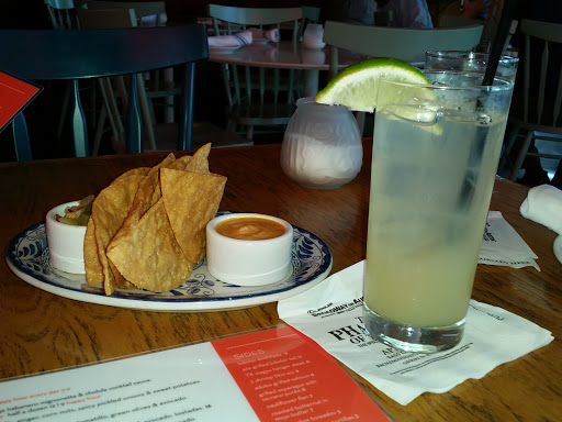 Great place! Overall the food and drinks were really tasty. Its a little higher-end ($10 for a margarita) but worth it. The decor is pretty modern and the lights dim. Tons of space to stretch out and catch-up with friends. We had a party of 10 and the service was so-so. We were able to get free queso by checking-in on social networks. So that was cool, and slightly tacky at the same time. We were charged an extra dollar for replacing the chips for the queso. Not sure if thats because they were free or a normal practice. I had the shrimp tacos and they were pretty good. They could use more shrimp. Overall, Id come back and recommend to my friends.