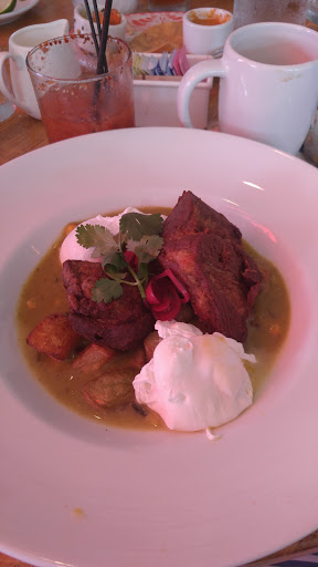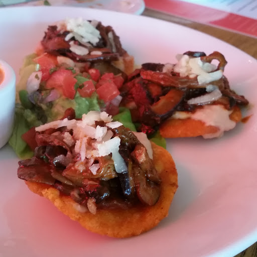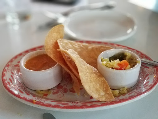 Great atmosphere and interesting Tex-Mex and seafood fusion. The guava mimosa was a welcome twist to the usual orange juice. Alcomar should have 4 stars, but everything we ordered was greasy. And Im not referring to "cooked with oil", but literally dripping. Queso flameado with sauteed mushrooms makes me nauseous just remembering it. The lobster omelette was oily, and stuffed with greasy vegetables. Didnt even finish half of it. For the prices they charge, youd think the chef would pay more attention to detail.