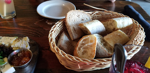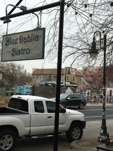 One afternoon as I was wandering around the 11th Street District enjoying the sights, I discovered that it was time to eat. I serendipitously bumped into a good friend who recommended that I try Blue Dalia Bistro. Initially, i was skeptical to venture into Blue Dalia because i was afraid that the prices might be out my comfort zone, but I was pleasantly surprised the learn that since I arrived during happy hour my worry for naught. As i walked onto the premises, I noticed that the outside of the bistro is full of quaint cafe tables and greenery. The black attired servers briskly moved among the customers with casual sophistication. As I made my way into the main dining room, i was struck at the rustic dark wood tables, floors and a few original paintings adorning the walls. The bistro most definitely gives off a rustic French cafe vibe and was very inviting. My waiter approached my table and informed me of the daily blackboard special that happened to be an open-faced sandwich, or tartine, in French. My friend, who recommended this place to me, mentioned how good the sandwiches are here, so i was instantly sold on trying one. I had the special of the day which was a ricotta, dried fig and apricot jam tartine on freshly baked bread accompanied by a mess of fresh spring lettuces and red grapes. I ordered a coffee porter with my meal which proved to be a good choice to offset the mild sweetness of the cheese and jam. The sandwich arrived on a black platter resembling a pizza stone. It was an absolutely perfect meal! If I could give Blue Dalia eleven stars, i would!